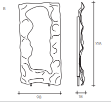 Le miroir rectangulaire Fiam Phantom est un miroir mural en verre fusionné à haute température de 6 mm , rétro-argenté.