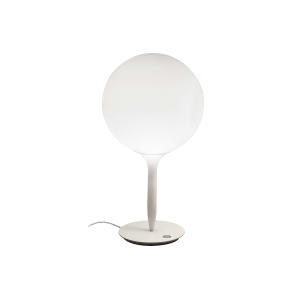 A wide collection of glass lighting appliances available in three sizes. Each size is available in the table, floor, ceiling and suspension version.Materials: lamp body in extruded aluminum; diffuser in blown glass.Specification: the milkywhite, blown glass with crystal nuances produces a soft spot light on the table top or wall, plus a highperforming light towards the surrounding environment.