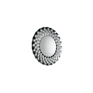 Wall mirror consisting of a 6 mm fused glass frame back-silvered in relief decorations.