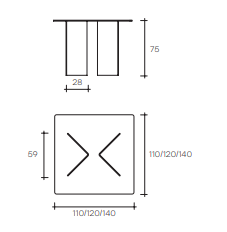 Sizes: 110 cm x 110 cm x 75 cm; 120 cm x 120 cm x 75 cm; 140 cm x 140 cm x 75 cm