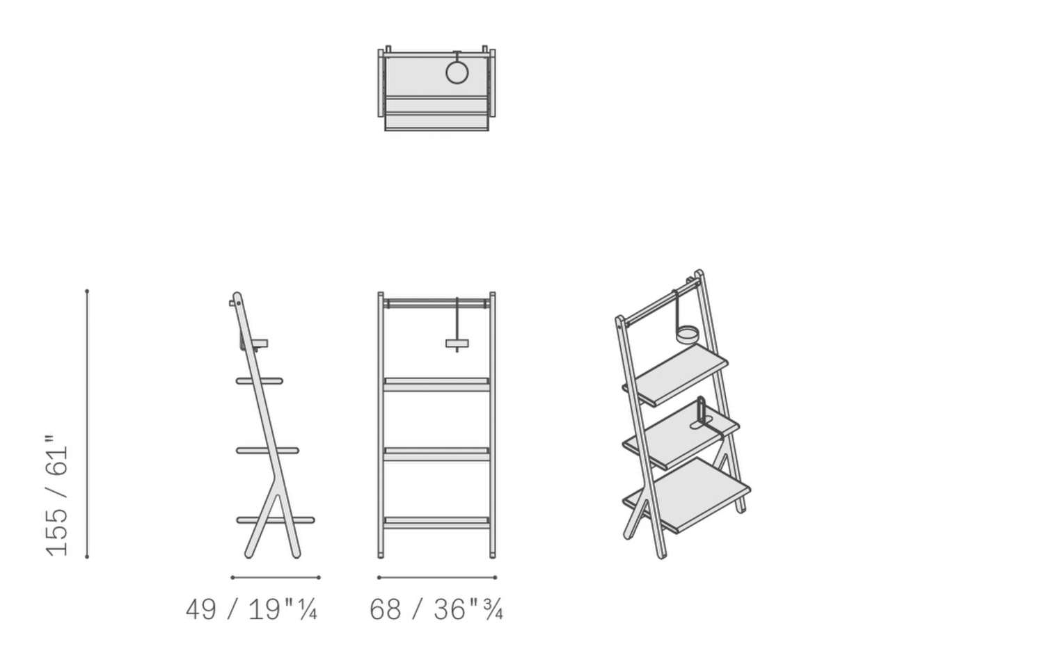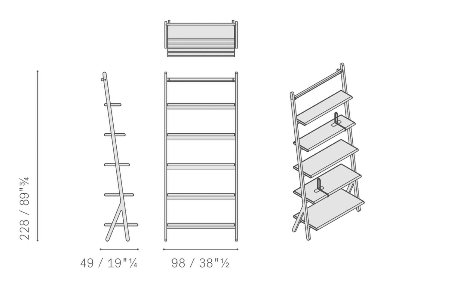 The Ren bookshelf stands out for its refined design and the quality of its materials. The two slightly inclined side supports securely hold the shelves, made from birch plywood and veneered with Canaletto walnut, one of the most prized woods. Each shelf is covered in Saddle Extra leather, a material that adds elegance and durability.