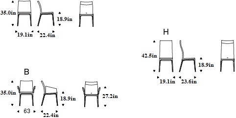 191/8 x 221/2 x 35 h 243/4 x 221/2 x 35 h 191/8 x 235/8 x 421/2 h